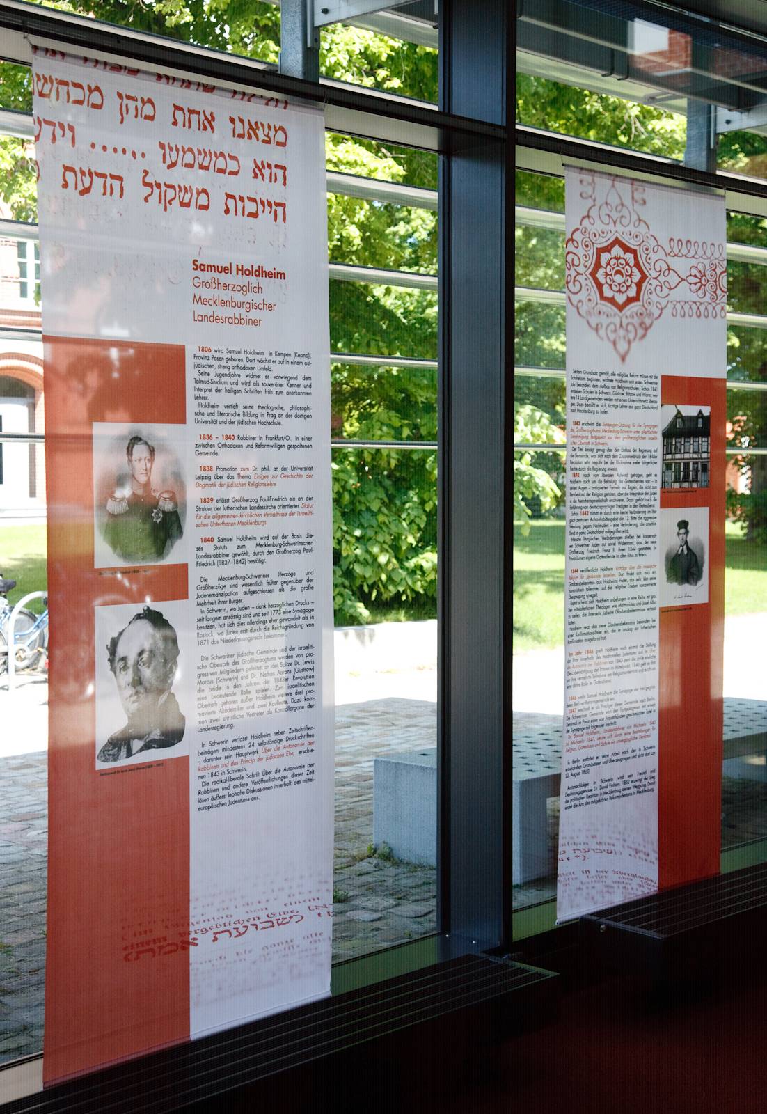 Im Rahmen der Einweihung der Landesrabbiner-Holheim-Straße am Schlachtermarkt in Schwerin fand in der Landesbibliothek Mecklenburg-Vorpommern eine Ausstellung statt, die Leben und Werk des ehemaligen Landesrabbiners darstellt. Die Ausstellung wurde von der Präsidentin des Zentralrates der Juden, Charlotte Knobloch und vom Landesrabbiner MV, William Wolff mit eröffnet. Für diese Ausstellung unter dem Tilel ,SAMUEL HOLDHEIM Radikaler Reformer und Großherzoglich Mecklenburg-Schwerinischer Landesrabbiner habe ich die Ausstellungstafeln gestaltet.